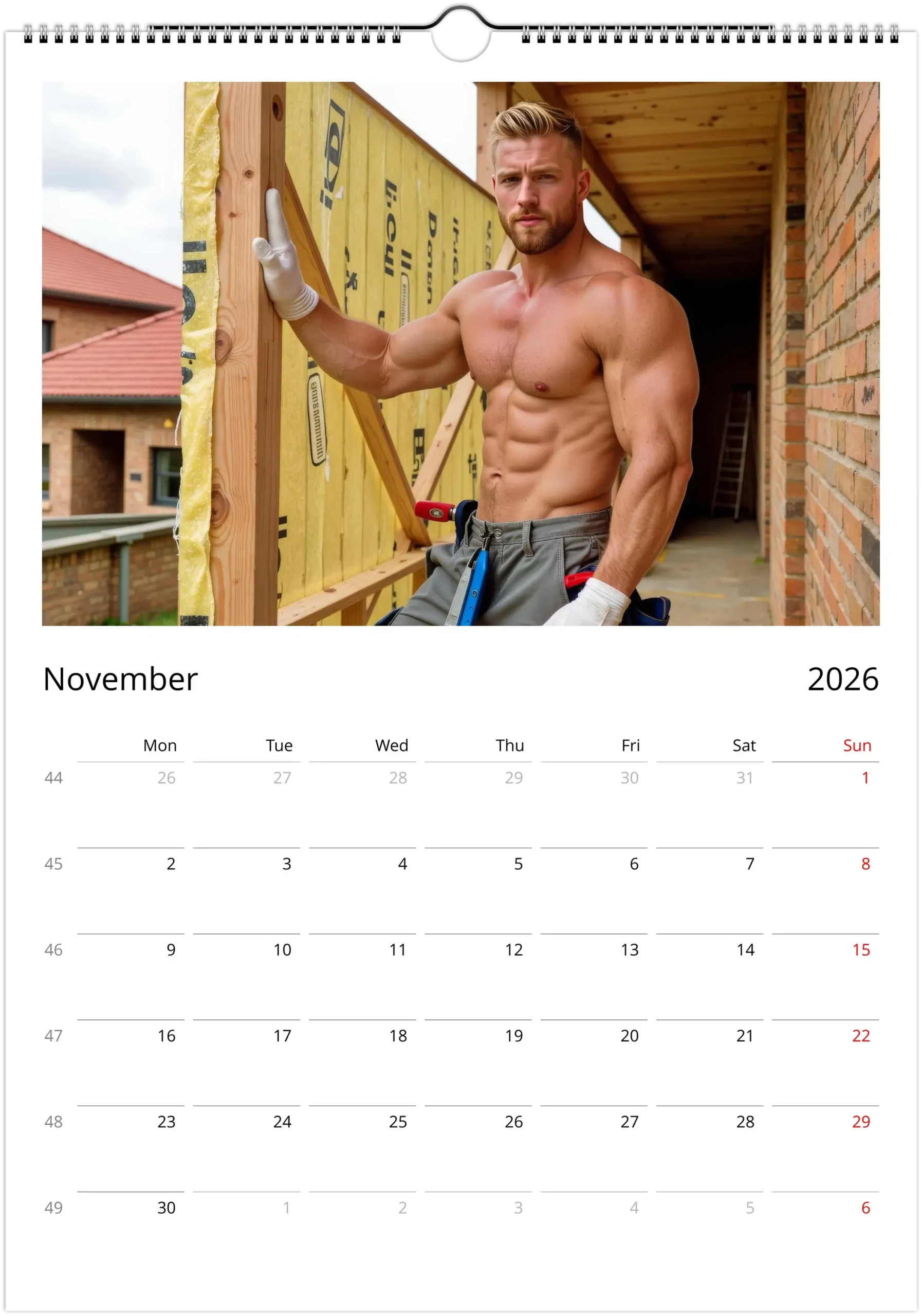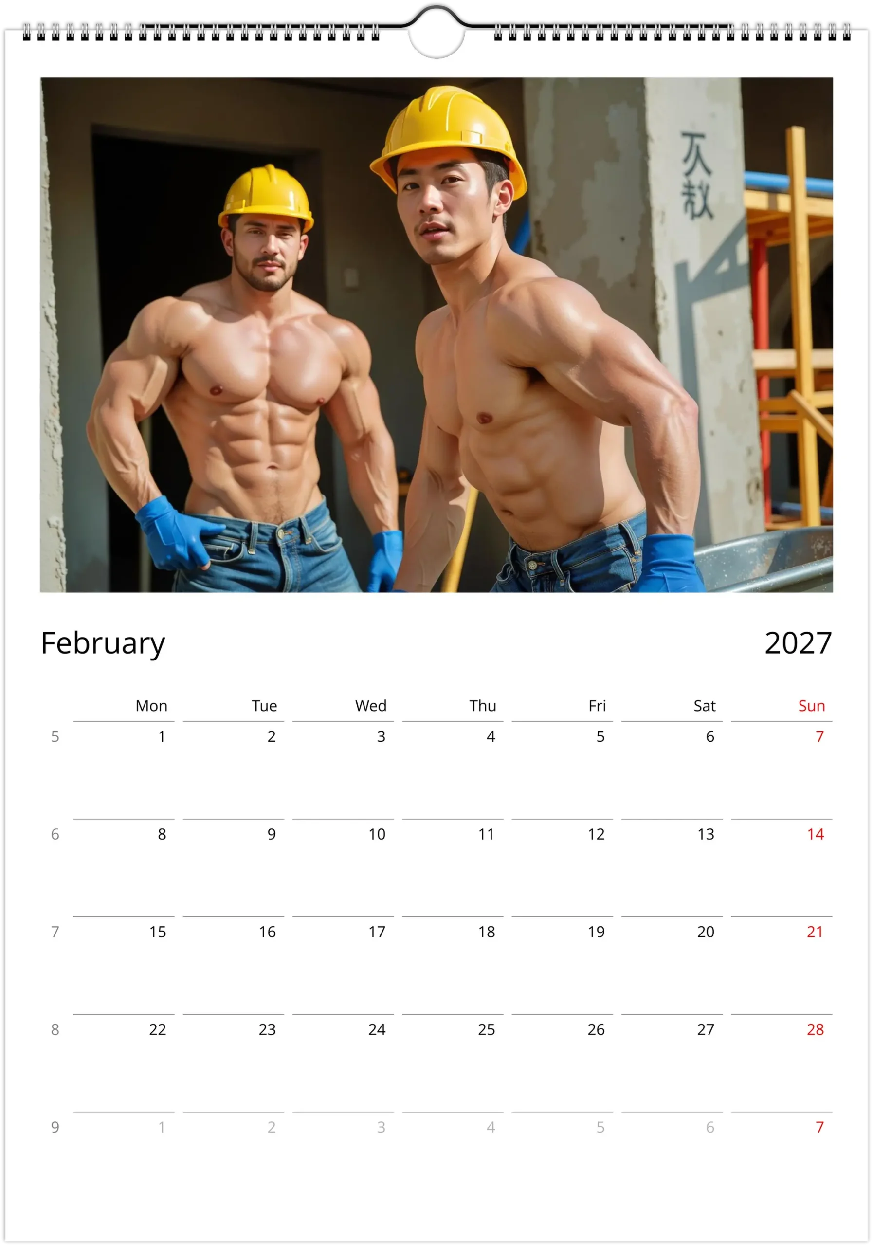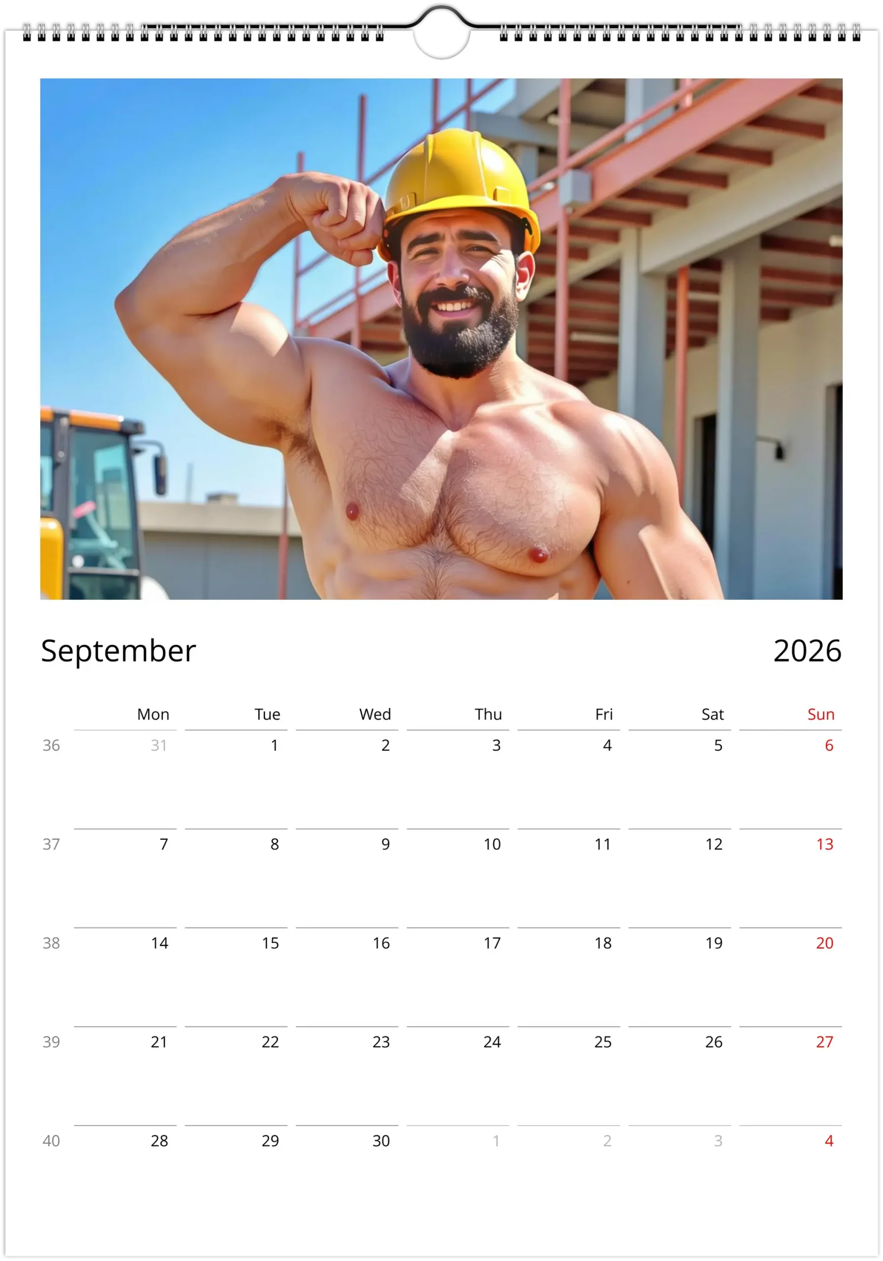 This calendar leans into that visual language with bold, high-detail imagery that feels rugged, warm, and unapologetically playful. It is a clean, display-ready collectible for your wall, desk, studio, or workspace, and a fun gift for anyone who loves construction-worker aesthetics, male pin-up energy, and beautifully printed calendars.